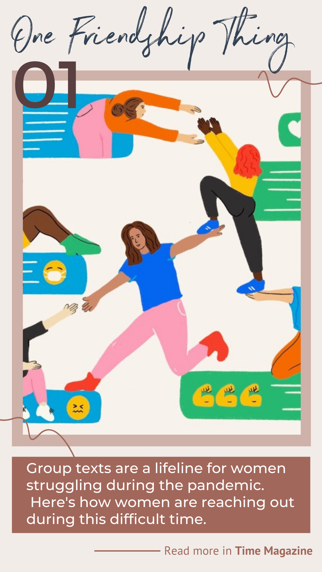 Nothing makes me more excited than a text from a good friend or former colleague. Just to connect with people is the most precious thing in the world right now. This Time Magazine article covers how women — isolated by the pandemic, and struggling to stay afloat — are throwing each other a virtual lifeline.